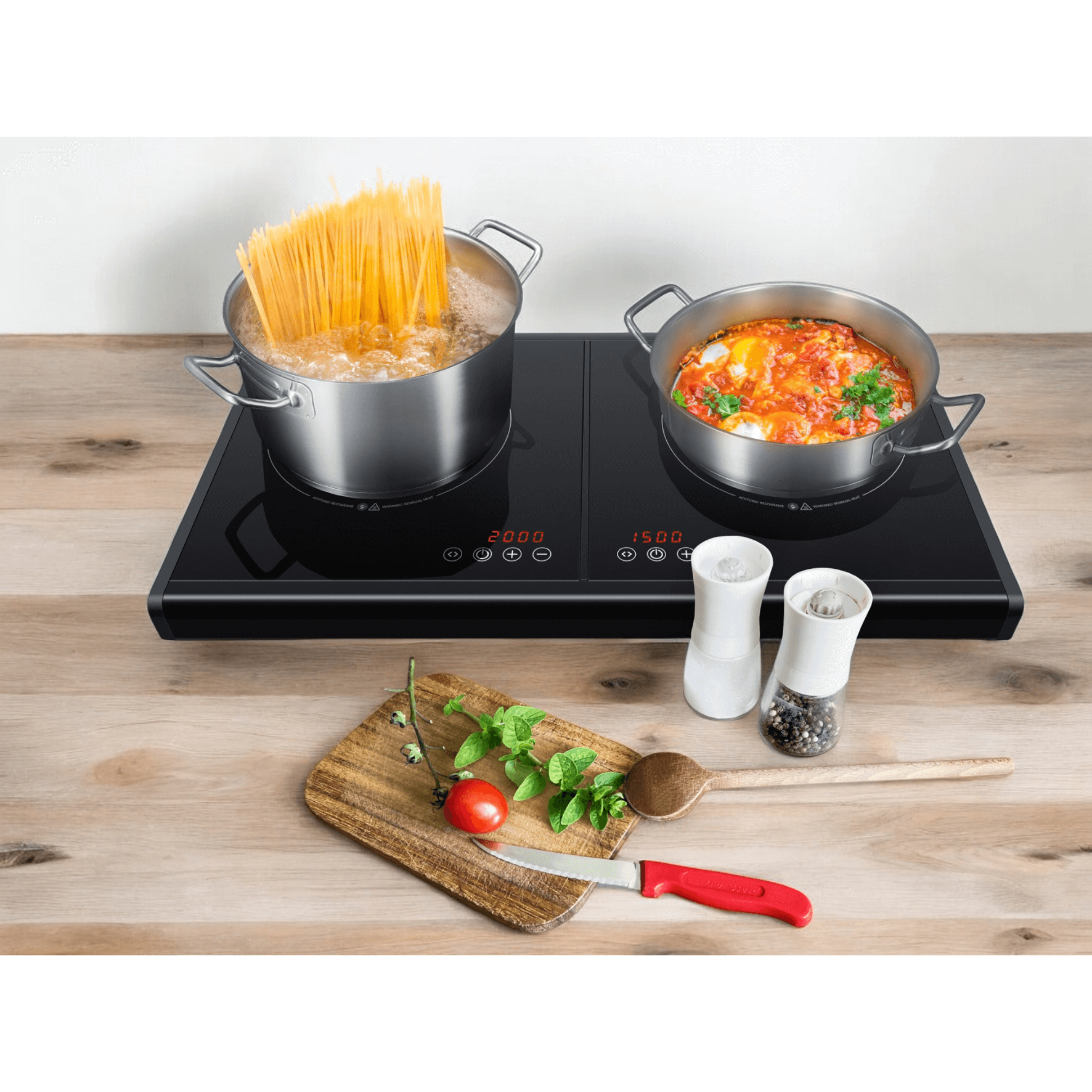 Das neue Doppel-Glaskeramikkochfeld vereint Funktionalität und modernes Design in einem kompakten Gerät, das sich ideal für die Küche oder das Camping eignet. Mit seiner robusten Glaskeramik-Oberfläche ist es nicht nur langlebig, sondern auch besonders pflegeleicht. Die beiden Kochflächen mit einem Durchmesser von jeweils 18,5 cm bieten ausreichend Platz für Ihre Töpfe und Pfannen und ermöglichen ein flexibles Kochen.