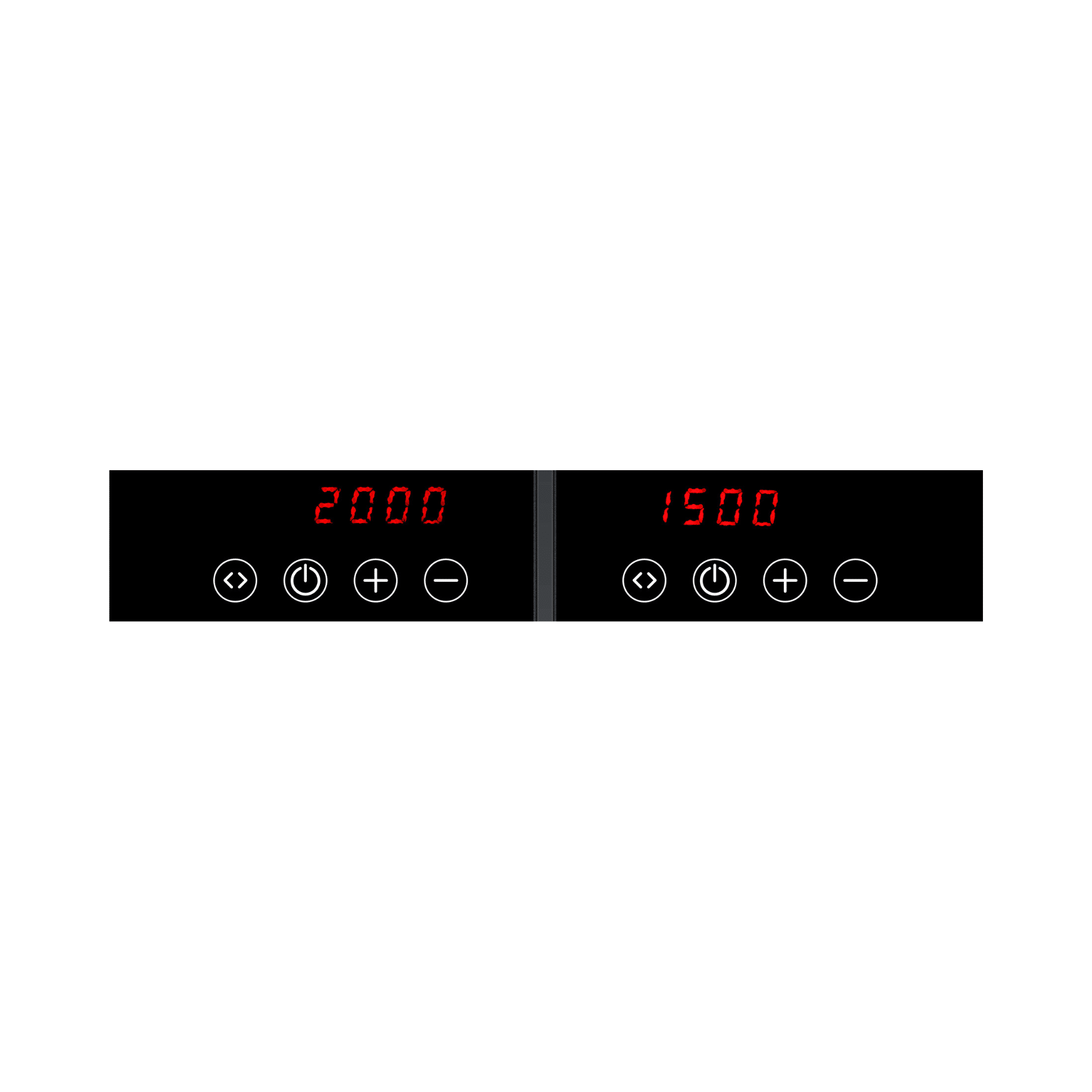 Die Leistungsregelung erfolgt in präzisen 100 W-Schritten, sodass Sie die Temperatur genau nach Ihren Bedürfnissen einstellen können. Das linke Kochfeld reicht von 100 bis 2000 W, während das rechte Feld eine Leistung von 100 bis 1500 W bietet. Diese exakte Regelung sorgt dafür, dass Sie ohne Schwankungen kochen können – perfekt für alle, die Wert auf gleichmäßige Garergebnisse legen.