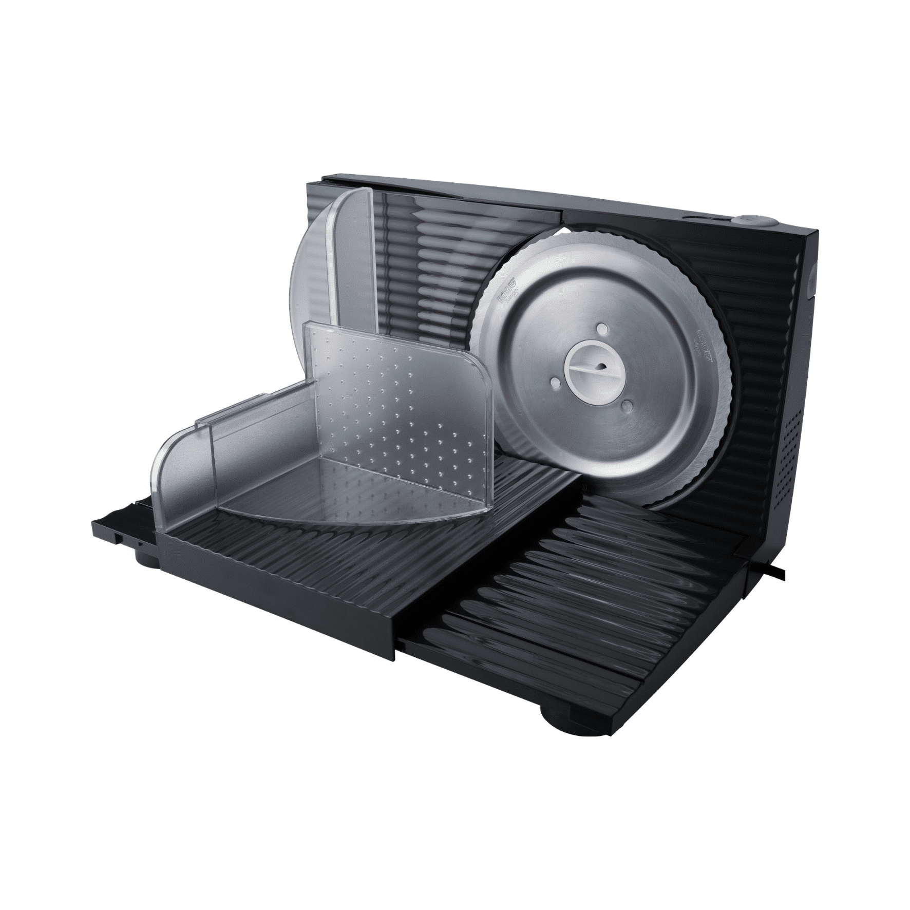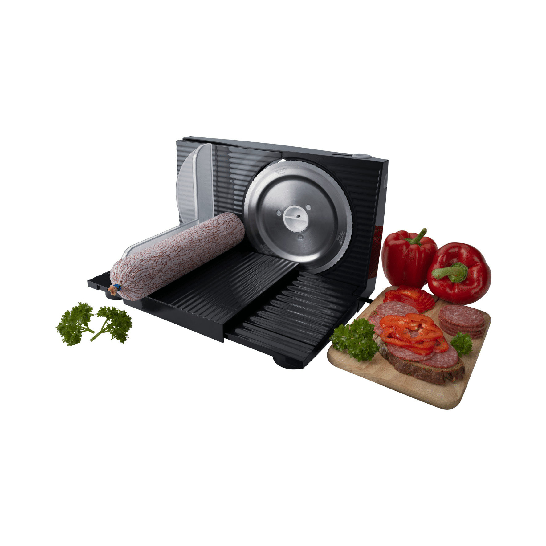 - Leichtgängiger Schlitten mit Handschutz und Lebensmittelhalter