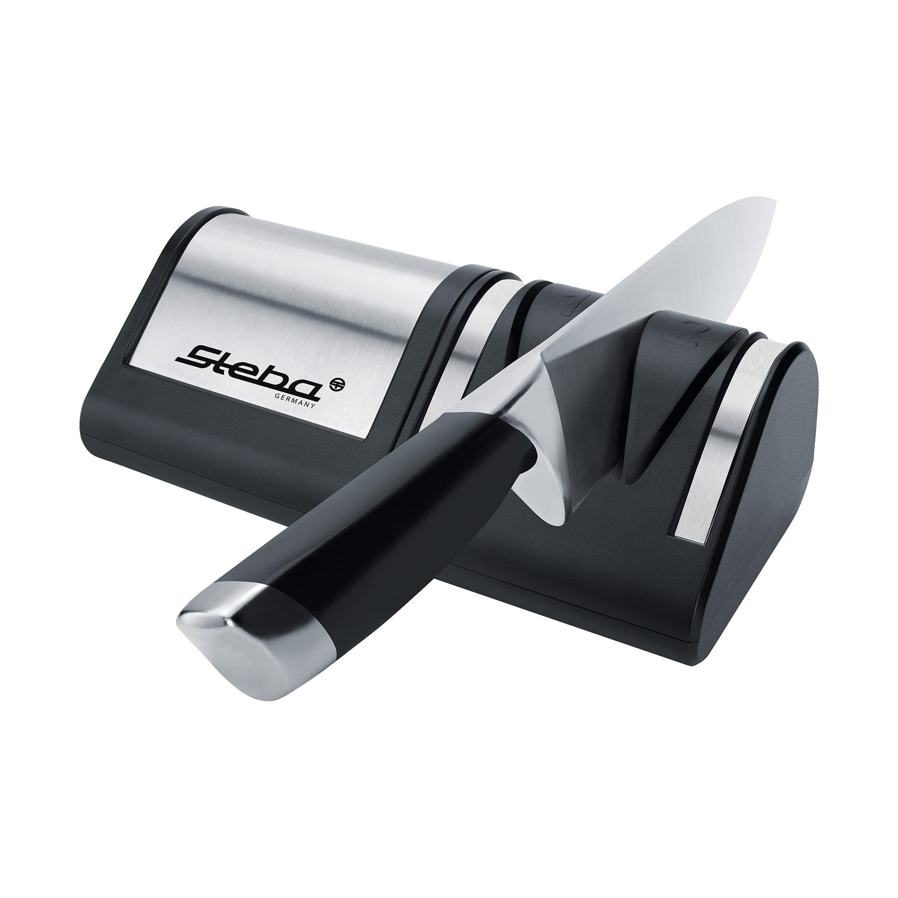 Der Steba Messerschärfer KS 1 schärft alle Arten von Messern (Metall, Keramik) immer auf den Punkt. Durch die Präzisionsklingenführung wird immer der ideale Schliffwinkel eingehalten und die Diamant-Schleifscheiben des 2-Phasen Schliffs sorgen für perfekte Ergebnisse.