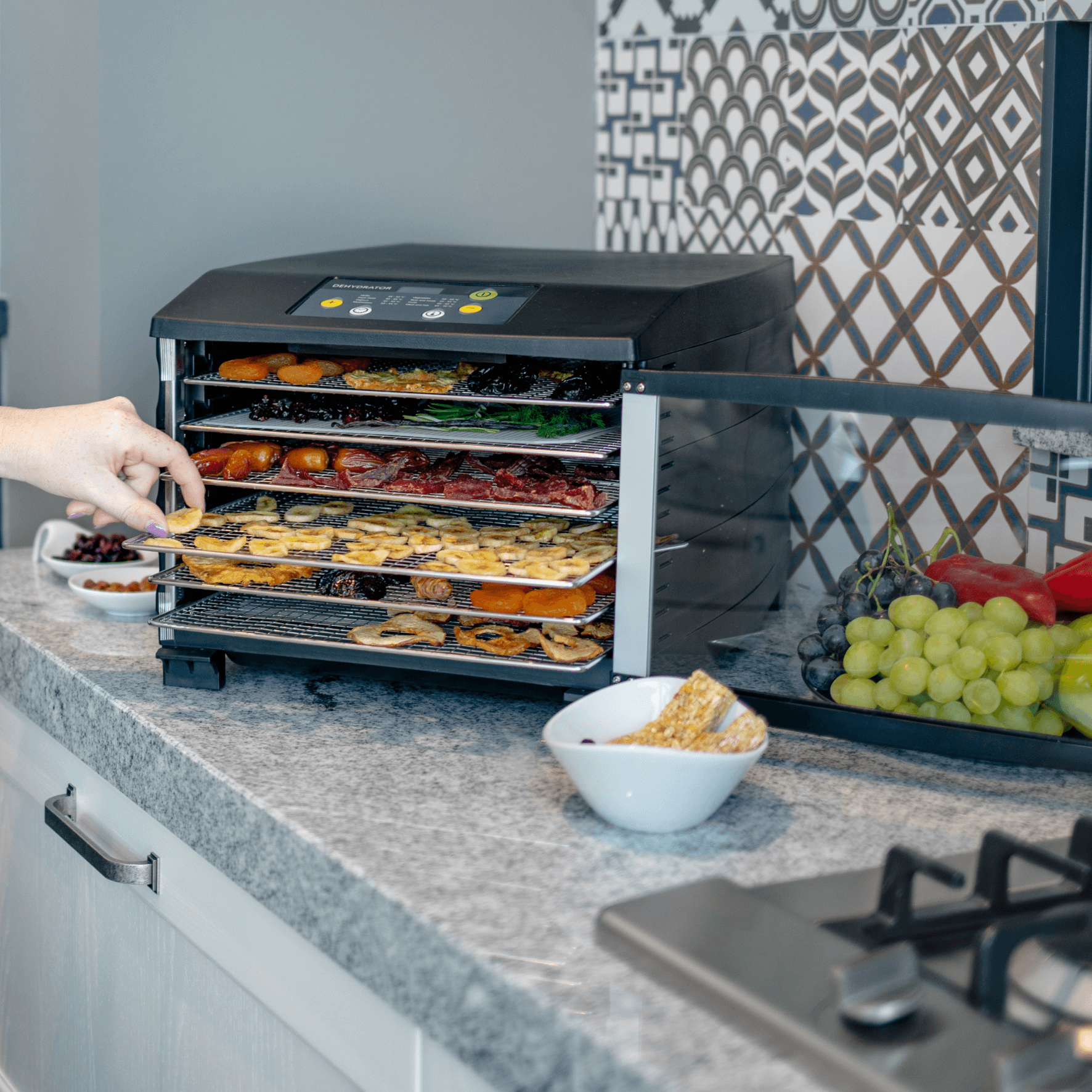 Das Dörren ist eines der ältesten Verfahren der Konservierung und wurde schon vor Jahrhunderten eingesetzt um Lebensmittel, mit Hilfe von Sonneneinstrahlung, für einen langen Zeitraum haltbar zu machen. Heute können wir diese Konservierungsmethode unabhängig vom Wetter ganzjährig einsetzten. Weiterhin stehen neben dem reinen Haltbarmachen auch neue Verwendungsmöglichkeiten im Vordergrund und eröffnen neue vielfältige Spielräume in Ihrer Küche. Vitamine, Mineralstoffe, wichtige Ballaststoffe und Eisen bleiben praktisch erhalten und Geschmacksaromen werden konzentriert.