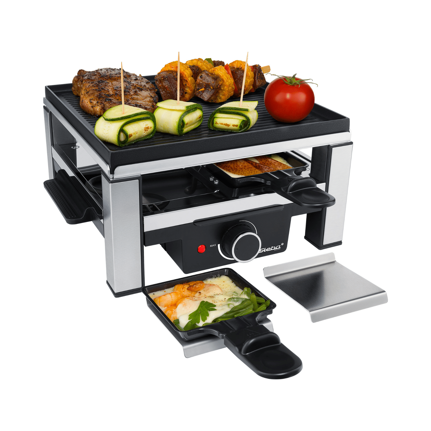 - Antihaftbeschichtete Grillplatte aus Alu-Druckguss für gleichmäßige Wärmeverteilung