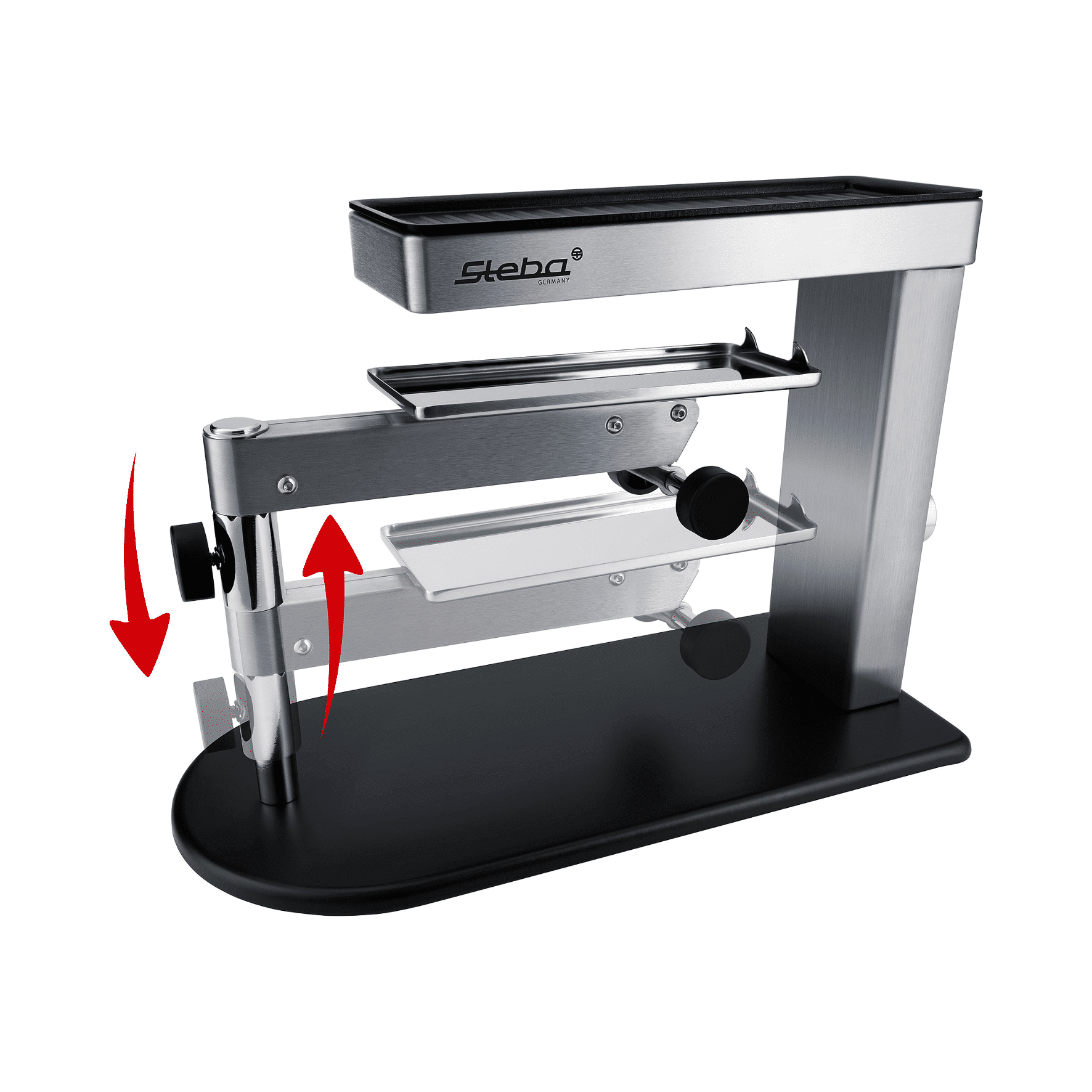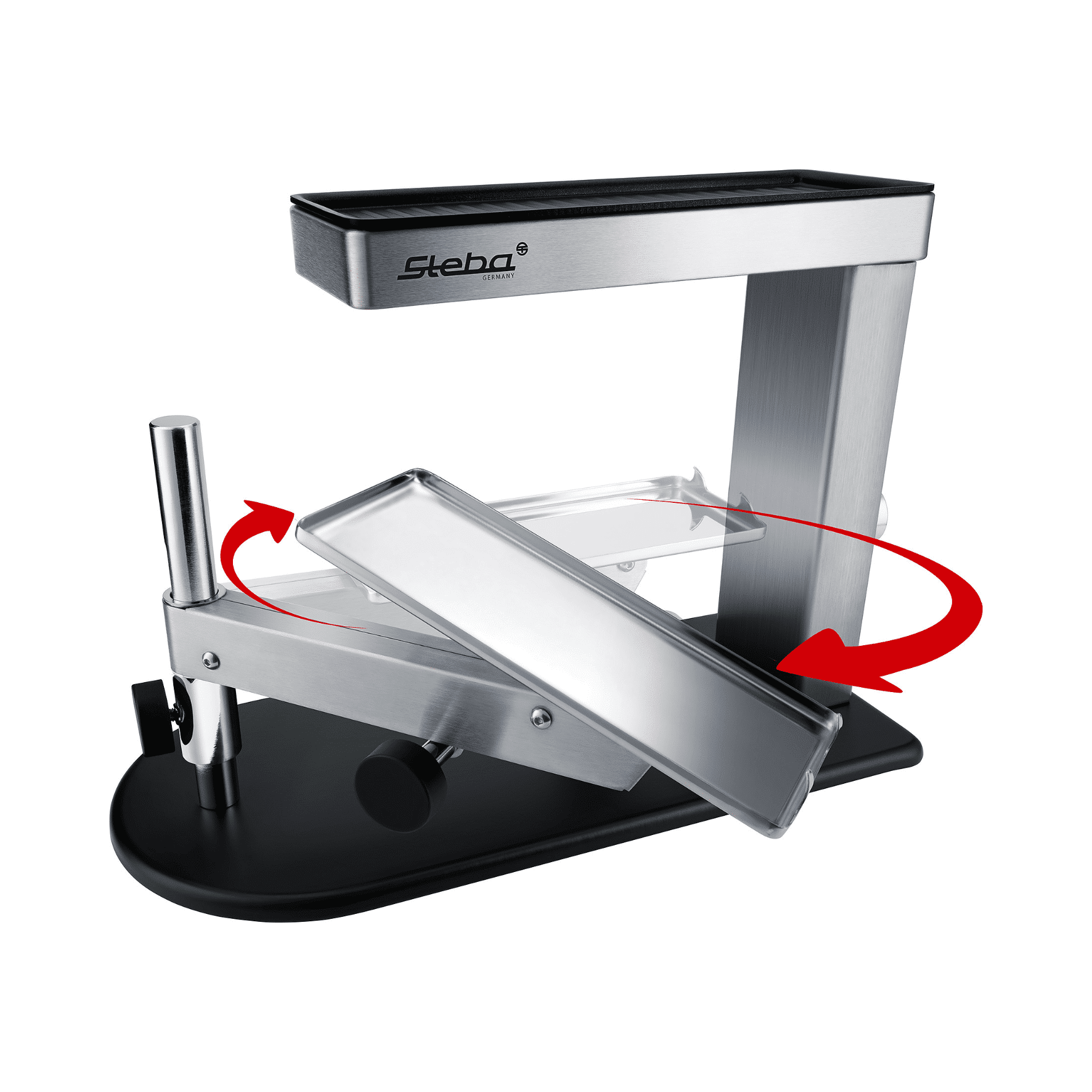 - 360° schwenkbare und höhenverstellbare Edelstahl-Auflage für Käse