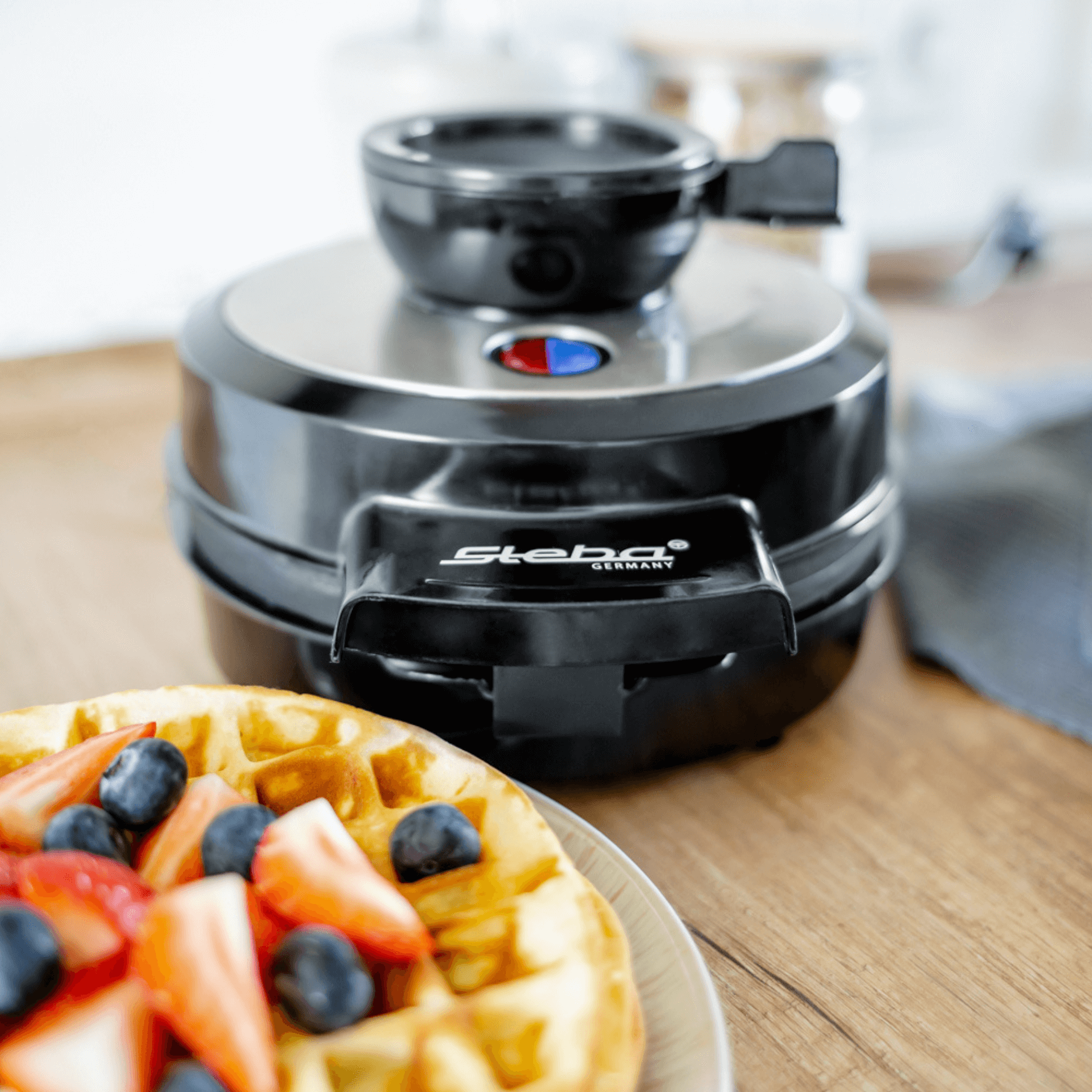 - Waffle iron for 4 Belgian style waffles